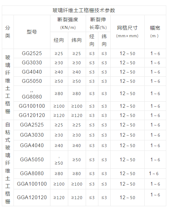 玻纖土工格柵是一種用于路面增強、老路補強,加固路基及軟土基的優良土工合成材料。玻纖土工格柵高強無堿玻璃纖維通過國際先進的經編工藝制成網狀基材,經表面涂覆處理而制成的半剛性制品。具有經、緯雙向很高的抗拉強度和較低的延伸率,并具有耐高溫、耐低寒、抗老化、耐腐蝕等優良性能,廣泛應用于瀝青路面、水泥路面及路基的增強和鐵路路基、堤壩護坡、機場跑道、防沙治沙等工程項目。基本簡介